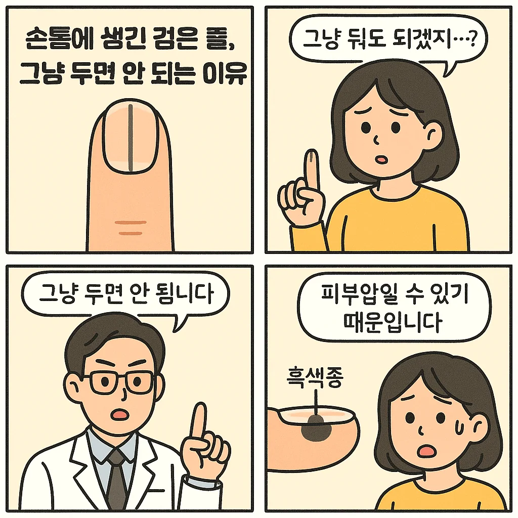 이번 글에서는 **손톱에 생긴 검은 줄(멜라닌 선조)**이 왜 생기는지,